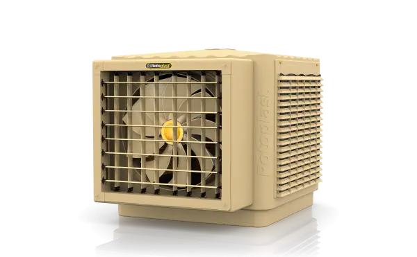 Equipamentos de ventilação fabricados em fibra SMC de alta durabilidade (vida útil superior a 50 anos), com veneziana anti-chuva exclusiva, hélice anticorrosiva, motor WEG e sistema avançado de distribuição e filtragem de água. Contam com controle remoto e Wi-Fi para operação via aplicativo, manutenção facilitada, modelos portáteis e diversas configurações para aplicações industriais, comerciais e residenciais.